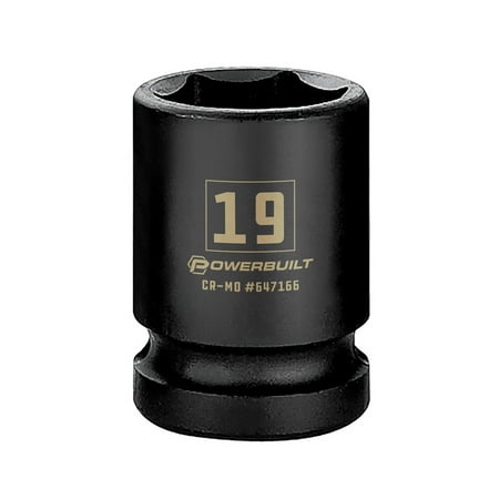 UPC lookup results for: 0028907367453 | Powerbuilt 1/2 Inch Drive x 19 MM 6 Point Impact Socket – 647166