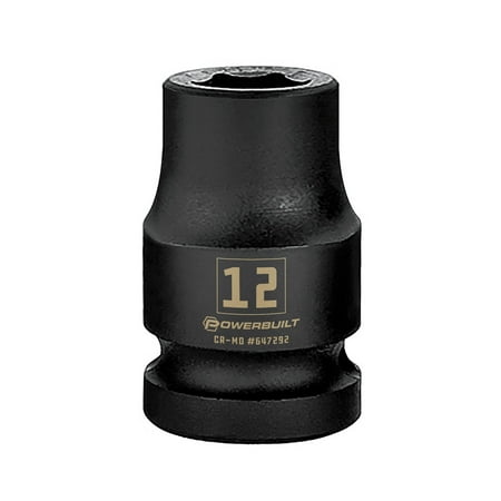 UPC: 0028907371009 | Powerbuilt 1/2 Inch Drive x 12 MM 6 Point Impact Socket – 647292