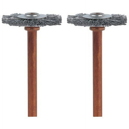 These Dremel brushes are made of heavy-duty stainless steel and won t cause after-rust when used on corrosive-resistant materials like pewter aluminum and stainless steel. The Dremel metal brushes are ideal for cleaning deburring and surface finishing projects. They re also suitable for use on flat surfaces and for getting into hard-to-reach places such as slots. The wire bristles have a 0.75 diameter and are designed for use with Dremel tools. They come in a convenient 2-count package.