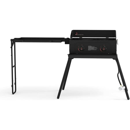 From the creators of Pit Boss® Grills prepare for your pursuit with Thiessens Authentic Outdoor Equipment. Experience authentic pursuit-driven superior-quality equipment that will consistently bring the best combination of features performance to your next outdoor adventure. Perfect for whatever your next camping expedition has in store the Thiessens Camp Stove was designed with convenience and function in mind. Why wait to cook your latest catch when you can whip something up as soon as you get back to the campsite. The Thiessens Camp Stove is constructed with lightweight yet durable steel so you can pack it up and move at moment’s notice. The folding cover that converts to a side shelf and legs make give this product two distinct identities: small compact stove top and robust encompassing cooking setup. Run the gas-powered burners all at once and use the front and side shelves to prep so you can have a home kitchen experience wherever your next adventure takes you.