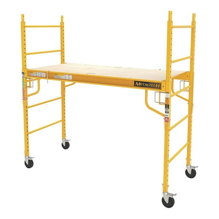 - At amazon.com you can purchase MetalTech Baker Adjustable Steel Platform Jobsite Series 6 Feet Tall Mobile Scaffolding Ladder with Locking Caster Wheels, Yellow for only