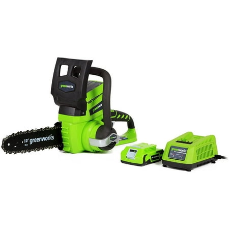 - At amazon.com you can purchase Greenworks 24V 10" Cordless Chainsaw, 2.0Ah Battery and Charger Included for only
