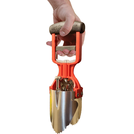 Planting bulbs and flowers has never been quicker! This tool is specially designed to dig holes effortlessly in one easy motion. Simply insert the DIRT SNATCHER into your planting bed soil pull the spring loaded slide up to lift out the dirt. Now you have a perfect hole for planting bulbs or nursery plants the quick release works great to fill dirt in when your planting is done. Constructed of nickel coated steel and high impact plastic. 11 long x 3.5 wide makes a 3 diameter hole.