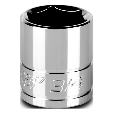 Capri Tools high performance sockets are trusted by professionals for even the most demanding applications. We use premium Chrome Vanadium steel tempered with our proprietary heat treatment process to make these sockets and accessories. They are durable and withstand more torque. Each socket underwent careful polishing and protective plating process to achieve our own SmartKrome finish. The 6-point WaveDrive design grips fasteners more tightly than traditional design preventing fastener rounding and giving you more leverage. Single 3/8 in. drive 3/4 in. size shallow socket.