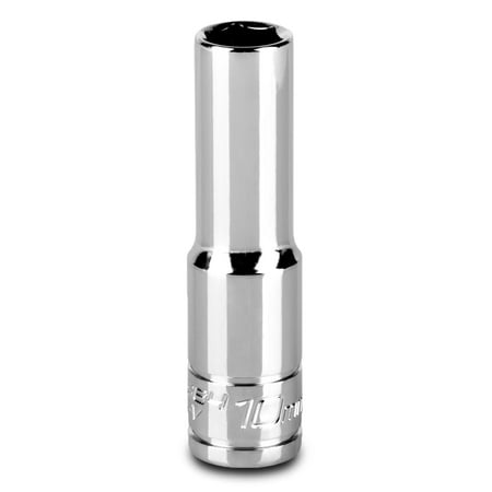 Capri Tools high performance sockets are trusted by professionals for even the most demanding applications. We use premium Chrome Vanadium steel tempered with our proprietary heat treatment process to make these sockets and accessories. They are durable and withstand more torque. Each socket underwent careful polishing and protective plating process to achieve our own SmartKrome finish. The 6-point WaveDrive design grips fasteners more tightly than traditional design preventing fastener rounding and giving you more leverage. Single 3/8 in. drive 10 mm size deep socket.