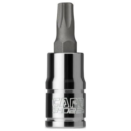The Capri Tools bit sockets are made for the most demanding professionals. Each of our bit sockets is made from custom forged steel that underwent a proprietary heat treatment process and precisely machined to perform in toughest situations. Premium S2 steel forged bits are exceptionally strong and durable. They withstand high torque and do not twist protecting both the bit and the fastener. All bits feature chamfered end to ensure a smooth fit onto fasteners. The sockets are constructed with premium Chrome Vanadium steel and plated with our own chrome protected plating. They are durable and resist corrosion. Meets and exceeds ASME B107.110 standards. Single 1/4 in. drive T27 star bit socket.