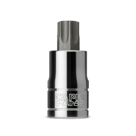 The Capri Tools bit sockets are made for the most demanding professionals. Each of our bit sockets is made from custom forged steel that underwent a proprietary heat treatment process and precisely machined to perform in toughest situations. Premium S2 steel forged bits are exceptionally strong and durable. They withstand high torque and do not twist protecting both the bit and the fastener. All bits feature chamfered end to ensure a smooth fit onto fasteners. The sockets are constructed with premium Chrome Vanadium steel and plated with our own chrome protected plating. They are durable and resist corrosion. Meets and exceeds ASME B107.110 standards. Single 1/2 in. drive T60 star bit socket.